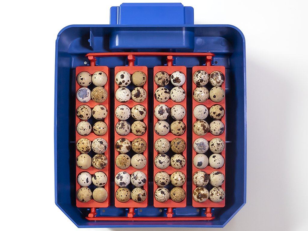 Kapacita s otočným roštom: 16 slepačích, 64 prepeličích, 16 husacích, 16 kačacích alebo 16 bažantích vajec.