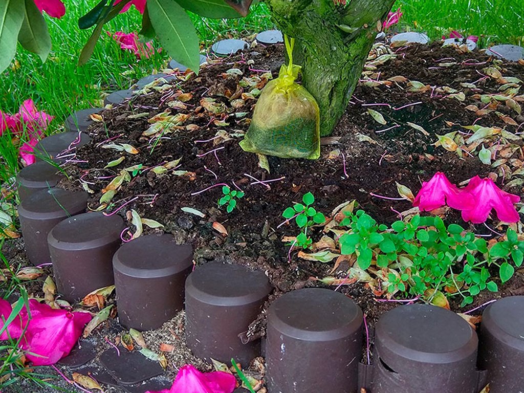 Záhony a skalky: Zaveste vrecúška na nízke kolíky alebo vetvičky kríkov v miestach, kde mačky najčastejšie hrabú.
