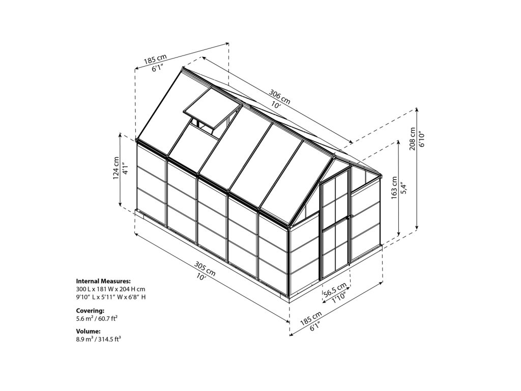 Skleník je vyrobený z polykarbonátu, ktorý je vzdušný, ľahký a vyniká vlastnosťami ako je napríklad bezúdržbovosť.