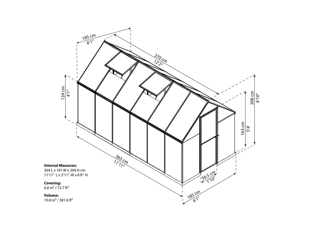 Celý skleník je nadizajnovaný tak, aby poskytol dospelej osobe pohodlný a ľahký pohyb v skleníku.