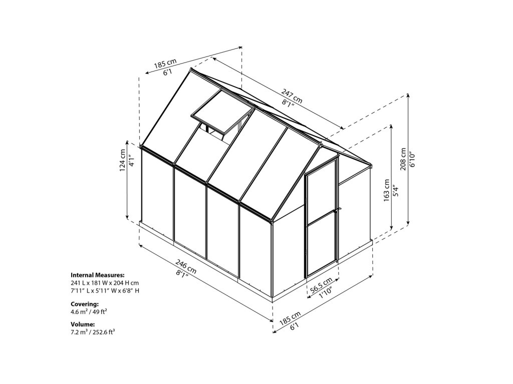 Celý skleník je nadizajnovaný tak, aby poskytol dospelej osobe pohodlný a ľahký pohyb v skleníku.